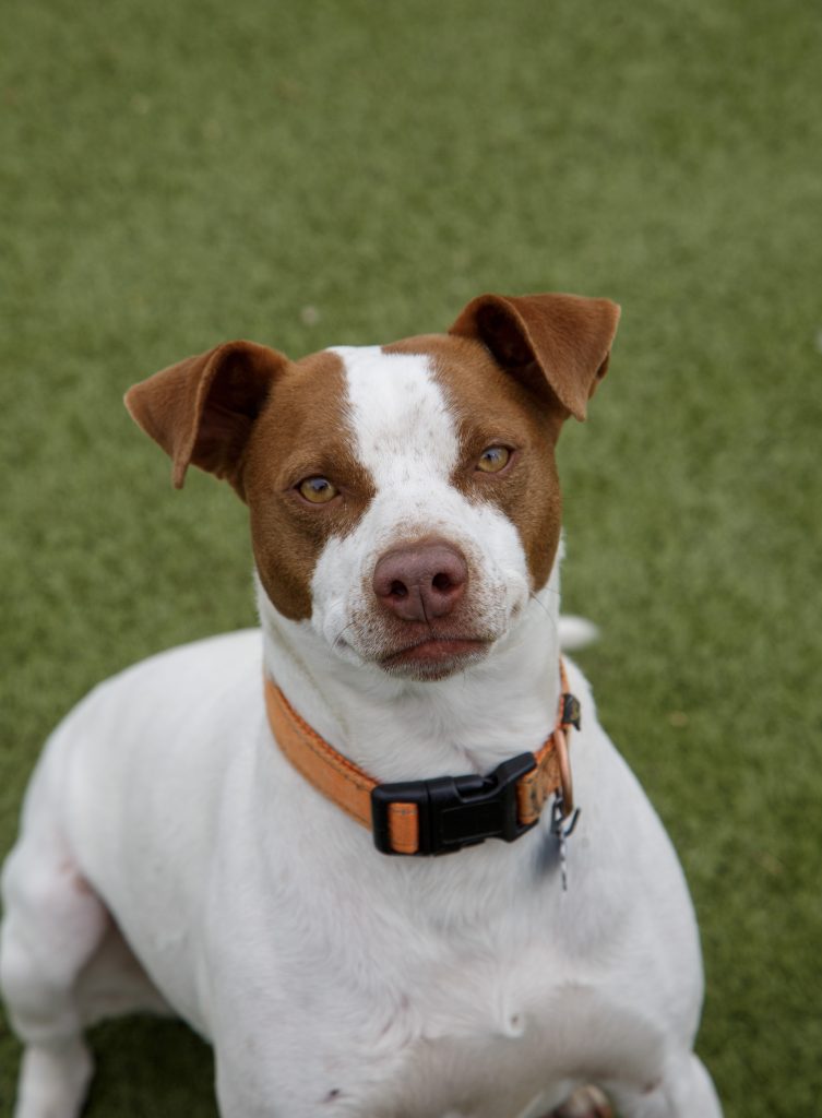 Joey is about a 1 year old male terrier mix and true to the terrier breed he has a ton of energy! He is a stout, compact little guy weighing 32 lbs. He walks well on leash, loves to play fetch, and adores children. He was a stray so we don’t have many details about him, but he is not a fan of most other dogs.