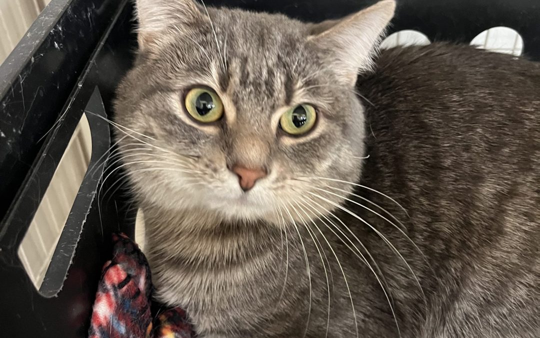 This handsome, 2-year-old boy is Munchkin, a shy but friendly guy that does well with cats and kids. It is unknown how he feels about dogs.