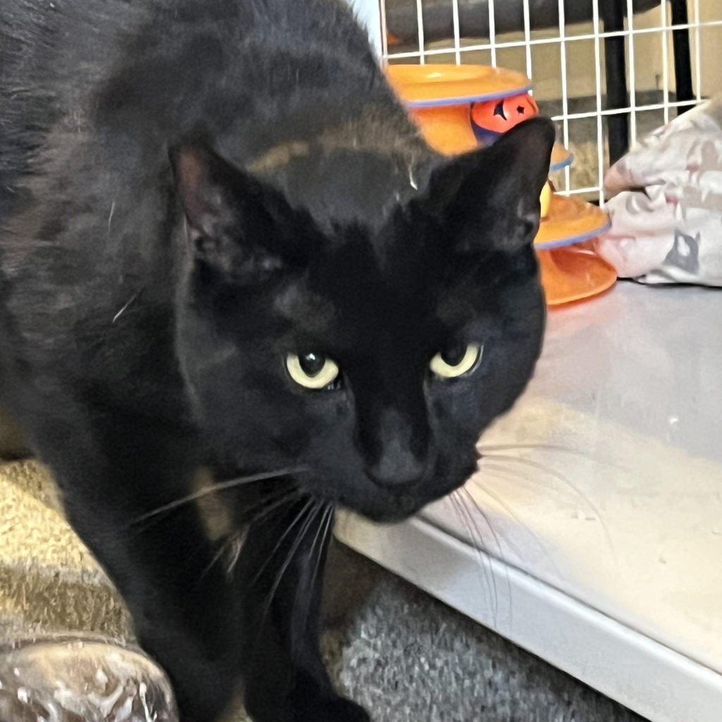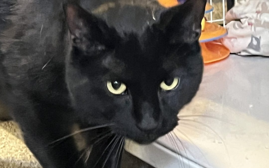 This sleek furred beauty is October. October is 7-years-old, affectionate, and loving. He arrived at GVAWL with Blue Man Group and he does well with kids, cats, and dogs.