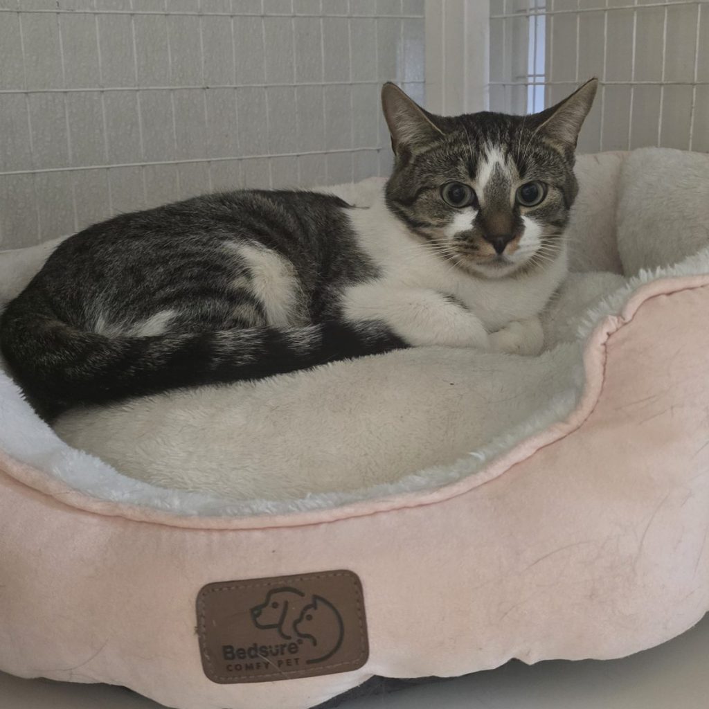 Puddin and Kitty Love are 2–3-year-old friends who recently arrived to GVAWL together. Puddin is a large boy, very soft and cuddly and he loves human affection. Kitty Love is a small girl who is not yet convinced that she likes it here – but she does tolerate affection. These two should be adopted together if possible.